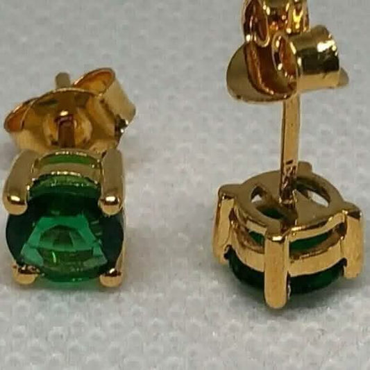 1 Ct Natural Green Emerald Round Cut Women's Stud Earrings 14K Real Yellow Gold