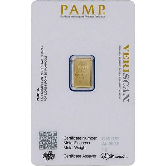 1 Gram Gold Bar PAMP Suisse Fortuna 999.9 Fine in Sealed Assay